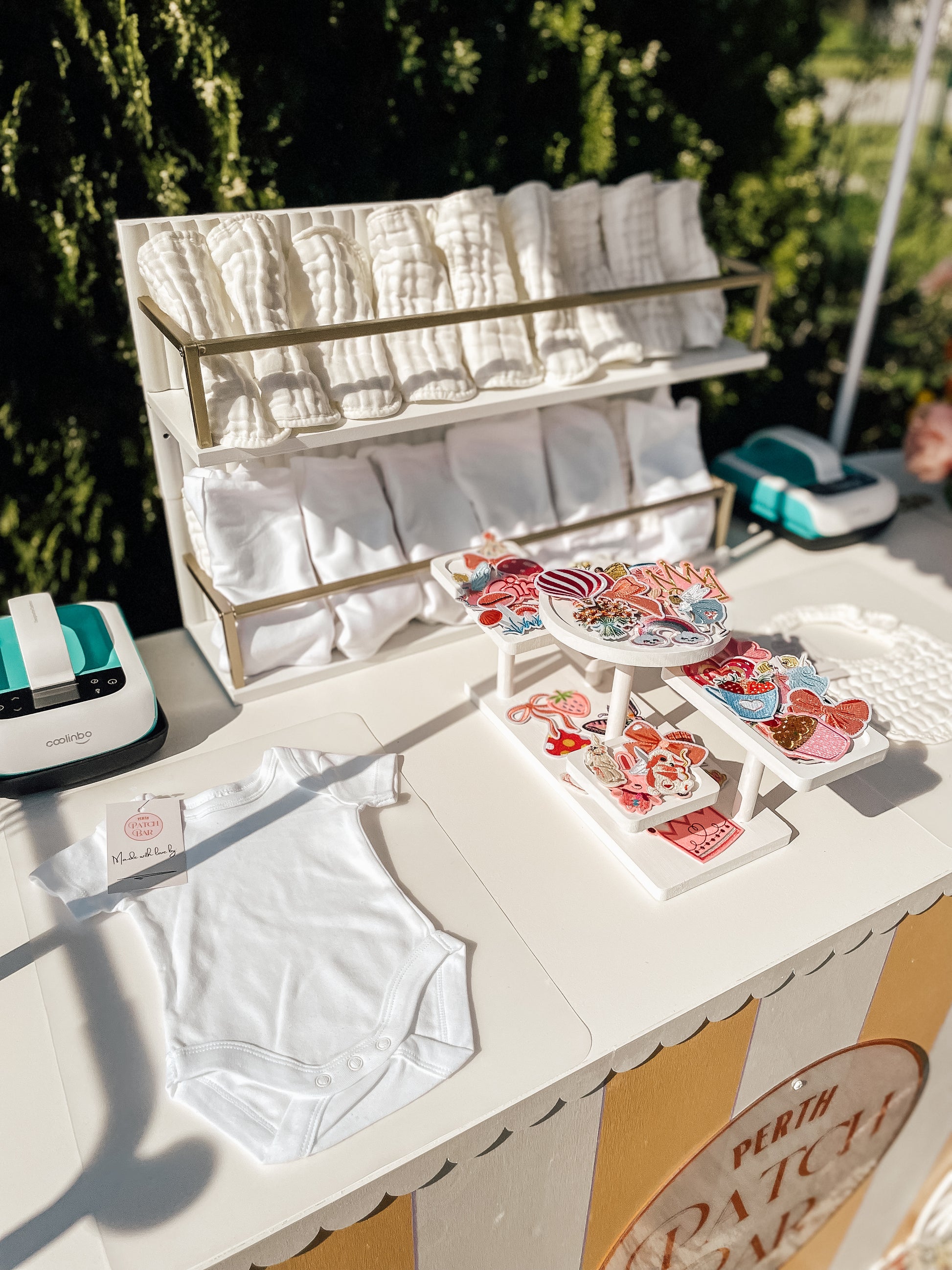 Transform your baby shower into a memorable event with our Pop Up Patch Bar! Hire us for a fun and unique experience.